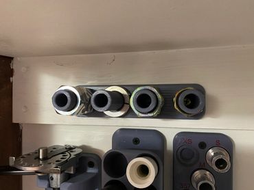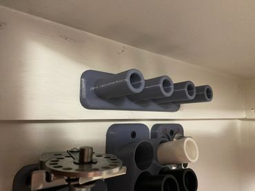 A simple wall mounted rack to hold all the spare die nuts that keep accumulating on my reloading bench. It was printed with Hatchbox Grey PLA. It mounts to the wall with 2 #8 standard wood screws or drywall screws. See it on Thingiverse!