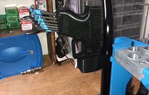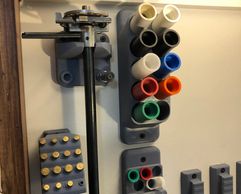Wall mounted rack to store station 1 locators and casefeed arm bushings.