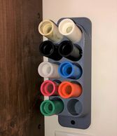 Wall mounted rack to store 10 Dillon Casefeed adapters.
