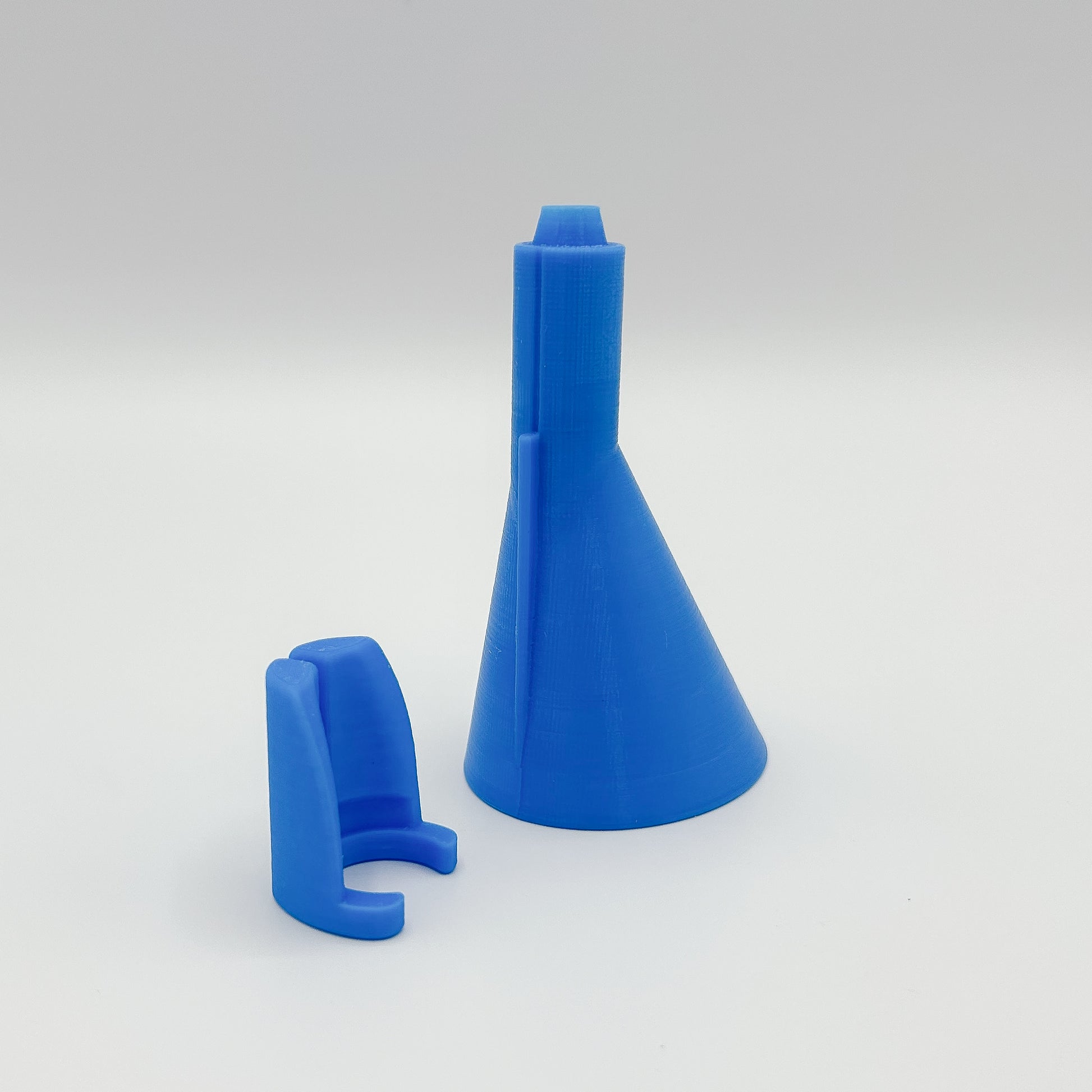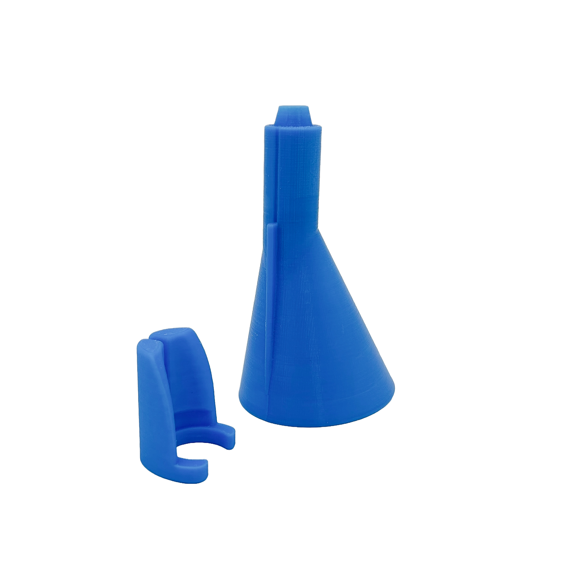 For Dillon Extra Large Powder Dies Only The Ultimate Powder Funnel for Your Dillon Precision Reloading Machines with Extra Large Dies! Crafted with precision for the discerning reloader, this funnel is exclusively designed to fit Dillon Extra Large Powder Dies on models like the RL550C, XL650, XL750, Super 1050, and RL1100. Its specialized design features a tapered end tailored to match the Extra Large Dillon Powder Funnel interface, ensuring no powder spillage and a perfect fit. This funnel is a two-piece set: one piece securely snaps onto your extra large powder die, featuring a unique slot that prevents rotation yet allows for the funnel to move up and down with your machine's operation. This maintains a precise interface throughout your reloading session. Constructed from high-quality, durable 3D-printed materials in a vibrant blue that complements your Dillon machine, this funnel is an essential accessory for any serious reloader looking to handle larger cases with ease. Please Note: This funnel is specifically designed for use with Extra Large Powder Dies and is not suitable for the standard powder dies. Key Features: