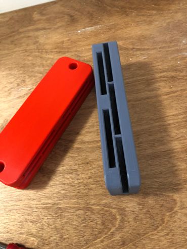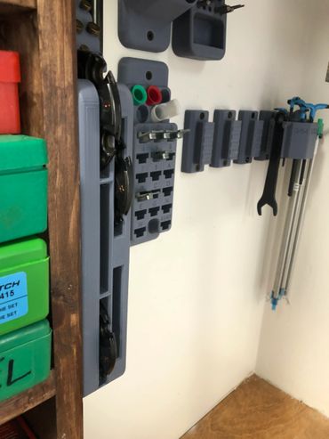 Both examples hold 5 Dillon XL650 or XL750 Shellplates and are attached to the wall using 2 #8 wood screws or drywall screws. The grey one is printed in Hatchbox PLA and has a flat base for easier printing. The red one is printed with MatterHackers Build series PLA and is symmetrically contoured. See it on Thingiverse!